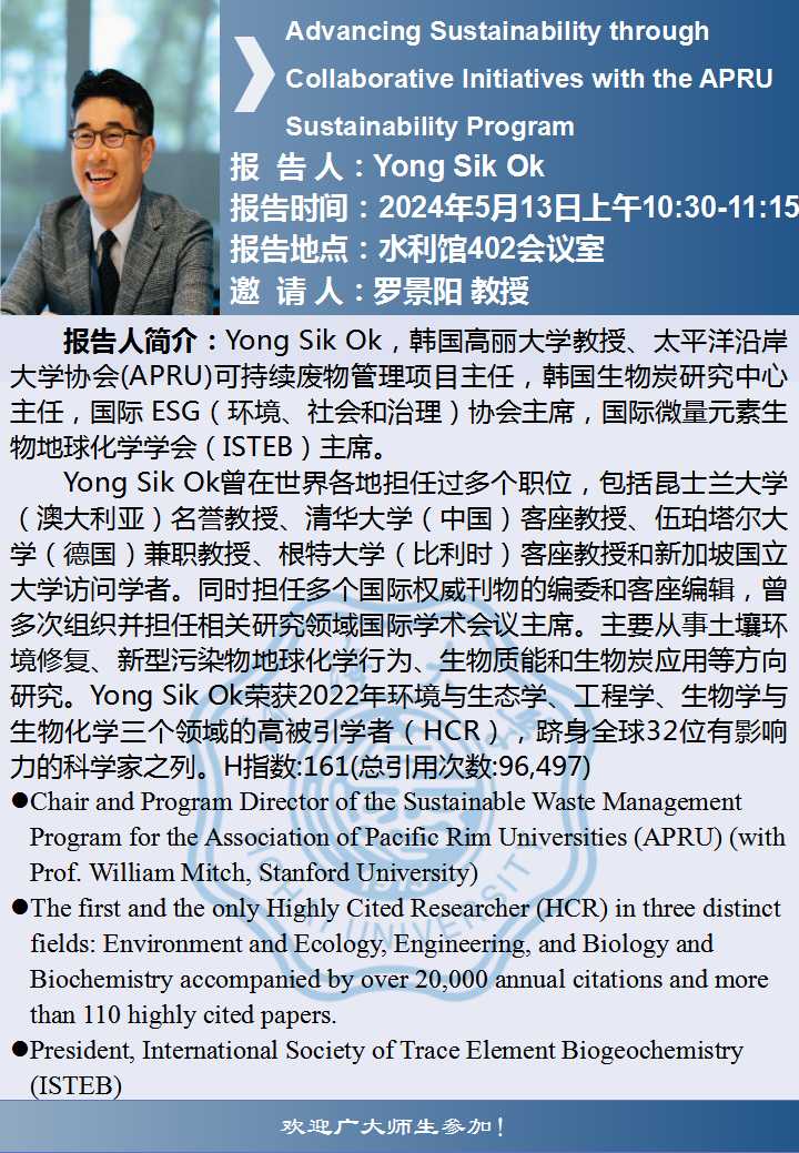 云顶国际yd333学术报告:Advancing Sustainability through Collaborative Initiatives with the APRU Sustainability Program