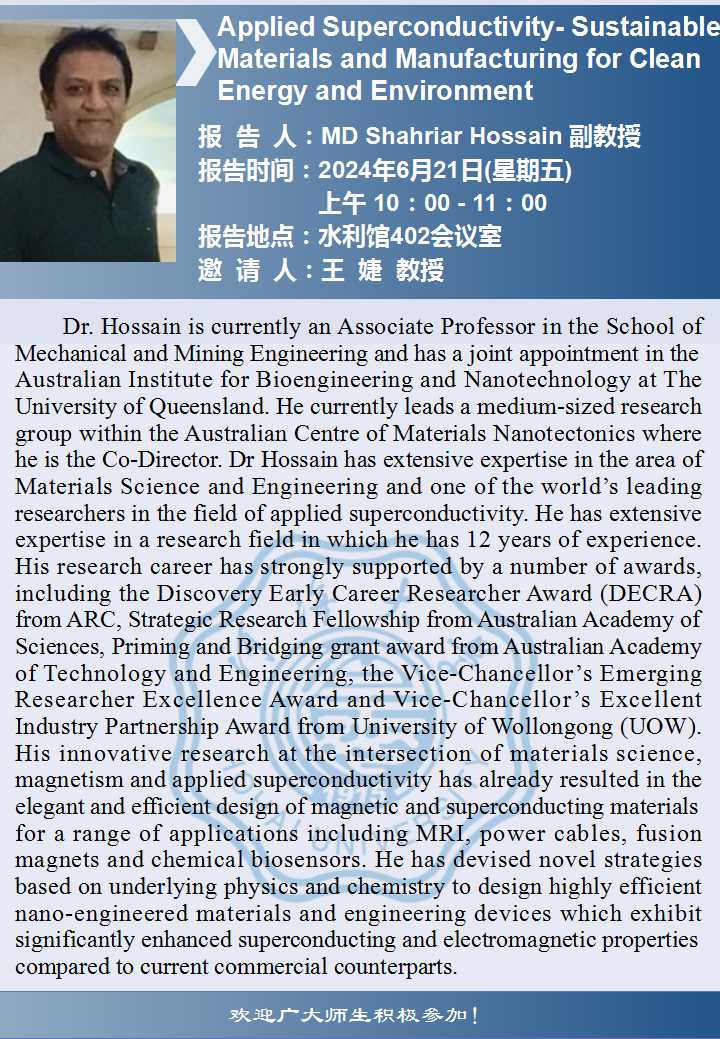 云顶国际yd333学术报告:Applied Superconductivity- Sustainable Materials and Manufacturing for Clean Energy and Environment