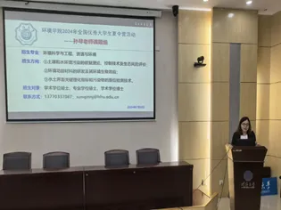 研究所介绍环节中,水资源保护与生态修复研究所陈娟教授、污水资源化与低碳发展研究所操家顺教授、现代水处理技术研究所郑晓英教授、环境规划与评价研究所程宇老师、水环境模拟与生态水力学研究所王鹏副教授、固废处理及资源化利用研究所谭啸教授、环境化学研究所闫振华教授、环境微生物研究所王龙飞副教授向营员们展示了本团队师资情况、研究方向、研究特色、科研成果以及优秀毕业生等。中国科学院大学南京学院史小丽研究员代表南京学院介绍了联合培养相关情况。