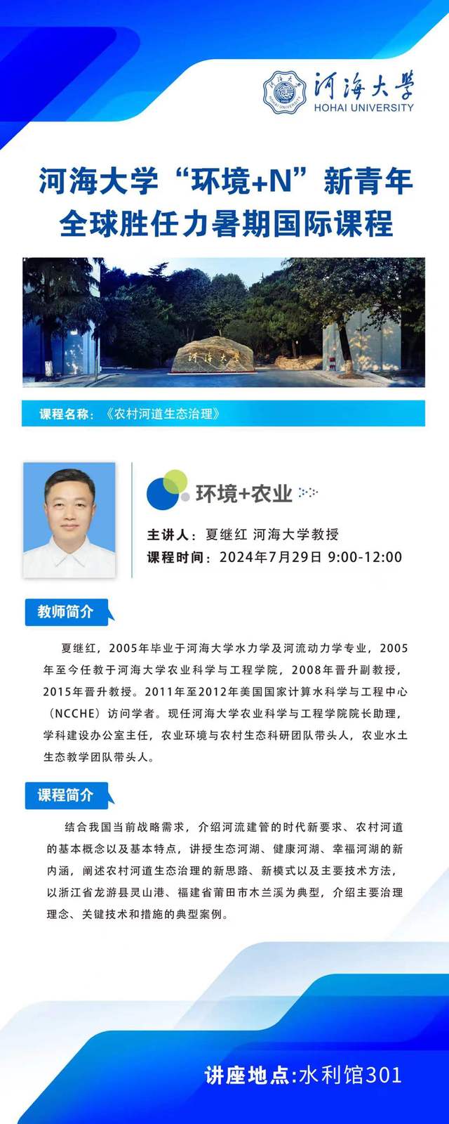 河海大学“环境+N”新青年全球胜任力暑期国际课程:“环境+农业”--农村河道生态治理